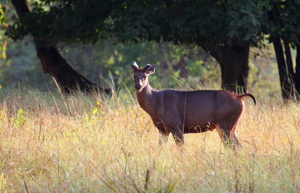 Satpura is home to tigers and leopards, but it is equally celebrated for its remarkable diversity. Sloth bears are frequently sighted, gaur move through forest clearings, and packs of Indian wild dogs patrol the deeper jungle. Chital, sambar, barking deer, and four-horned antelope form the prey base that keeps this ecosystem thriving.